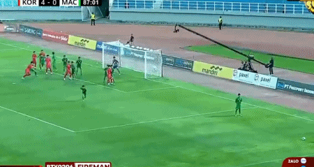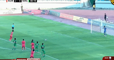 第50分钟,澳门9号禁区内拉人犯规送点,韩国18号点球命中,韩国3-0